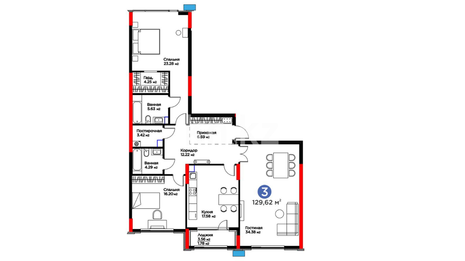 3-комнатная