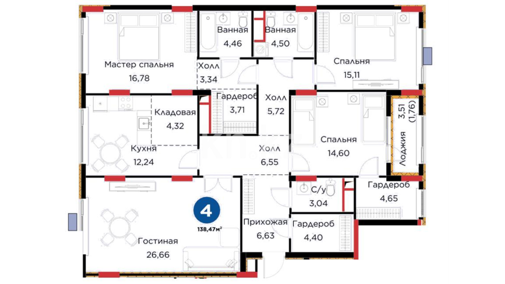 4-комнатная