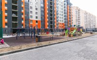 Двор расположен на кровле подземного паркинга. Территория закрыта для посторонних, по периметру установлены камеры видеонаблюдения.