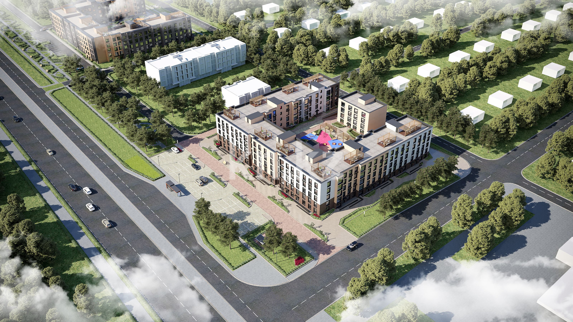 Территория комплекса закрыта для посторонних, во дворе отсутствуют автомобильные проезды. Дворовая территория комплекса разделена на 5 тематических спортивных и детских зон, каждая из которых имеет обособленную и функциональную инфраструктуру.