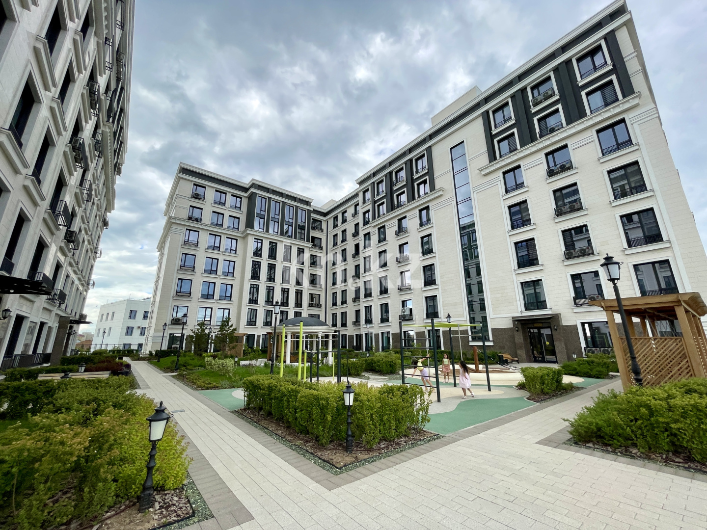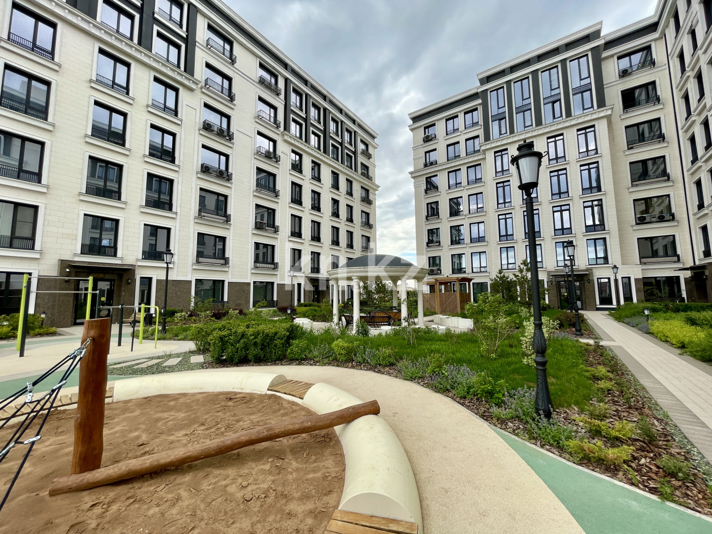Безопасный и тихий двор станет отличным местом для отдыха, и перенесет жителей в эпоху великих изобретений Да Винчи. Проводите время за чтением книг в уютной зоне отдыха, общайтесь в просторной беседке в классическом стиле, играйте с малышами на детской площадке в эко стиле.