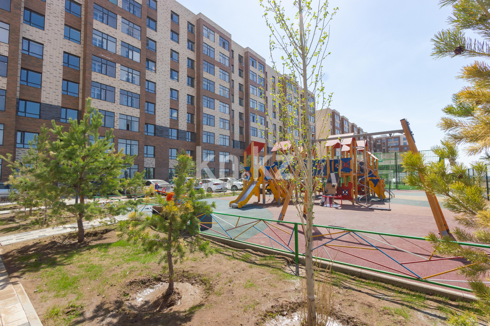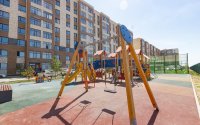 - детская игровая площадка с качелями и горками,