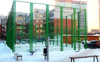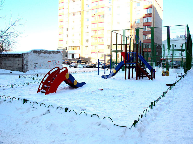 Во дворе ЖК находятся детская игровая площадка, огороженное футбольное поле и комплекс уличных тренажёров. Крытого паркинга нет, только парковочные места во дворе.