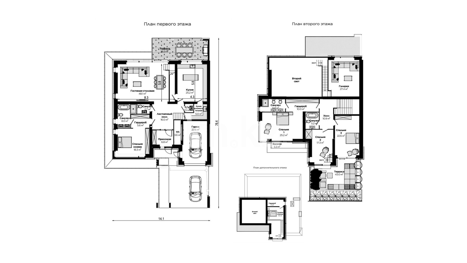 В здании общественного назначения в исключительном доступе для резидентов коттеджного города развитая внутренняя инфраструктура: