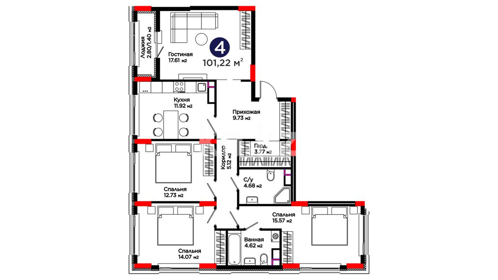 4-комнатная