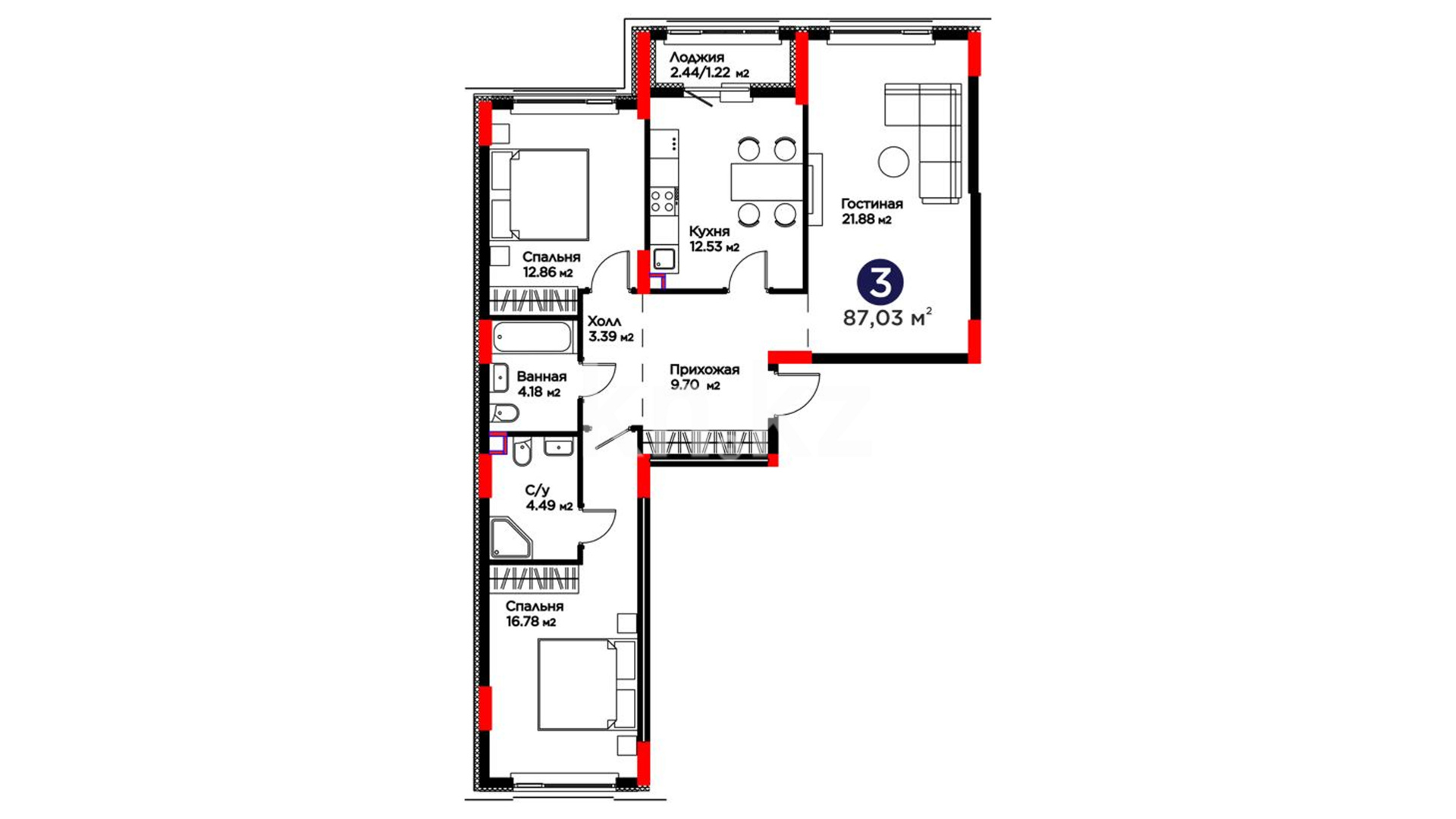 3-комнатная