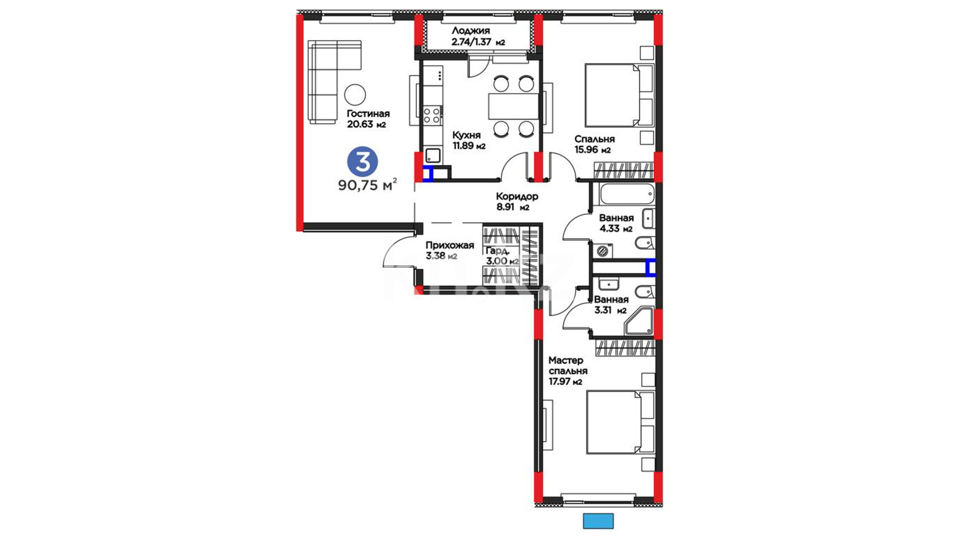 3-комнатная