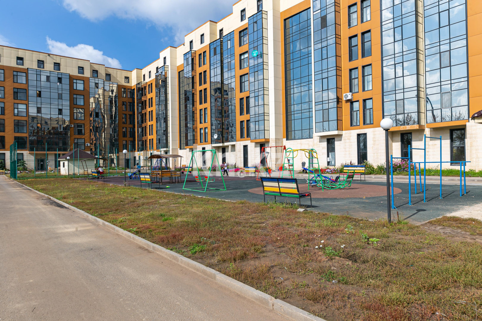 На территории новостройки проложены пешеходные дорожки, тротуары и проезды для автотранспорта. Организованы гостевые парковочные места, сооружен подземный отапливаемый паркинг на 120 машино-мест. Оборудованы детские игровые площадки и места для отдыха взрослых. Установлено современное уличное освещение.