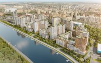 Жилой район «Ferrum City» объединяет два берега столицы в единое целое, состоит из трех кварталов, 47 жилых комплексов - от малоэтажных корпусов до высотных башен. Облицовка фасадов выполнена из фиброцементной панели, а также из клинкерного кирпича естественных оттенков. На крышах многих домов будут расположены террасы.