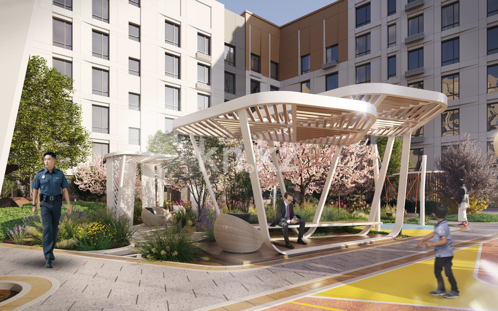 Пространство двора полностью освобождено от автомобилей, обеспечивая безопасность и комфорт для прогулок и отдыха. Весь двор освещен, дорожки имеют комфортное покрытие. Круглосуточное патрулирование закрытой территории обеспечит безопасность и контроль периметра 24/7.