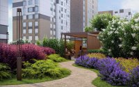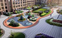 Особое внимание уделено благоустройству. Проект реализует концепцию «двор без машин», при которой весь внутренний двор отведён под зону отдыха. Здесь разместятся детские и спортивные площадки, зоны воркаута, тенистые аллеи, озеленённые газоны, цветники и места для прогулок и отдыха с уличной мебелью и архитектурными формами. Все элементы ландшафта спроектированы с учётом климата и сезонности, предполагается использование многолетних деревьев и кустарников. Для велосипедистов предусмотрены велодорожки и парковки.