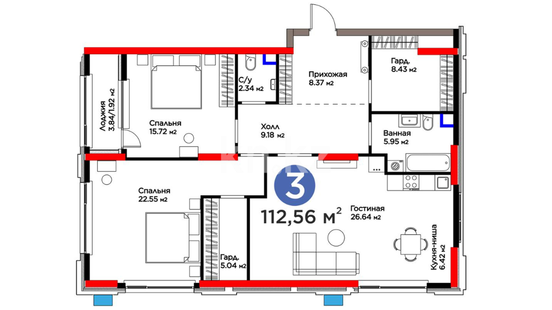 3-комнатная