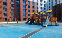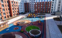 В центре двора сооружается большая детская площадка с качелями и горками, workout-зона с уличными тренажерами, а также огороженное металлической сеткой поле для футбола и баскетбола.