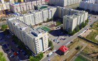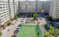 Во дворе жилого комплекса растут деревья и кустарники, разбиты газоны и клумбы, установлены уличные тренажёры, детские и спортивные площадки, скамейки, беседки, имеются места для стоянки машин.