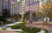 Детская инфраструктура представлена современной зоной play hub — это многофункциональные игровые площадки для детей разных возрастов. Оборудование выполнено из экологичных материалов и соответствует всем стандартам безопасности. Поверхность покрыта мягким ударопоглощающим покрытием, что делает игры максимально безопасными и комфортными.