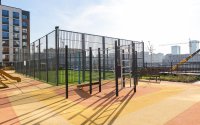 Внутридомовая территория комплекса спроектирована согласно концепции «двор без машин». Современная территория Playhub объединяет в себе детские и спортивные площадки с безопасным покрытием, контактные игровые комплексы и workout зоны, рассчитанные для детей и взрослых разного возраста.