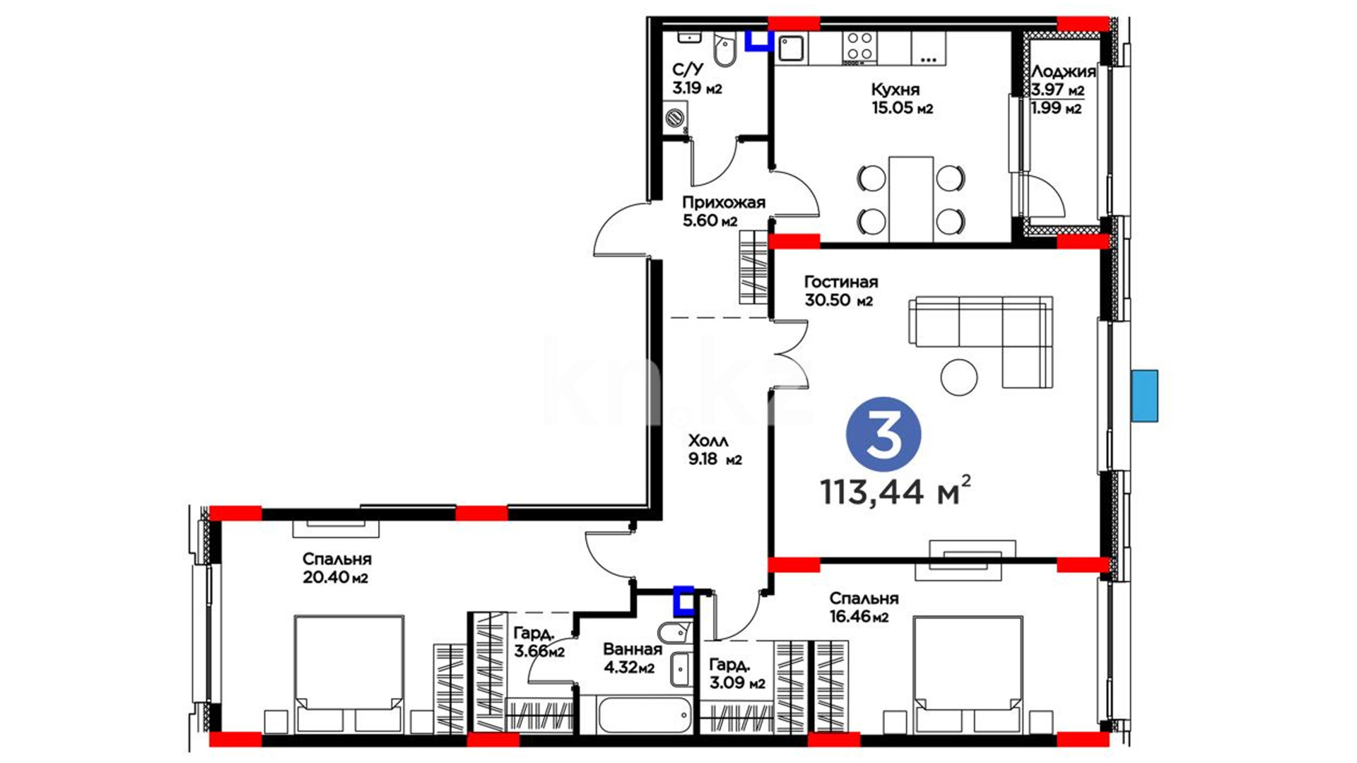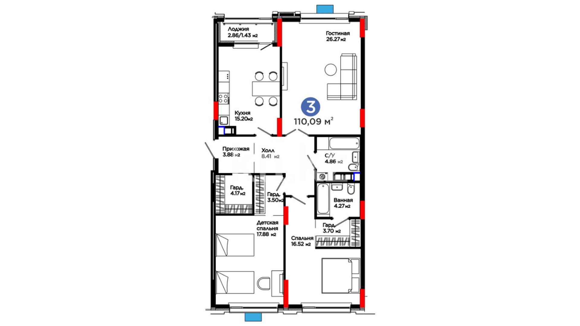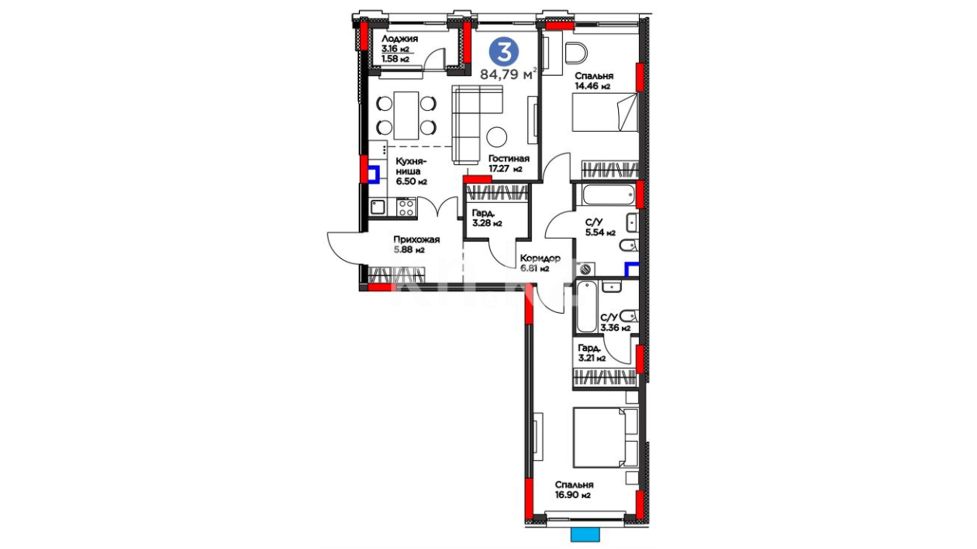 3-комнатная
