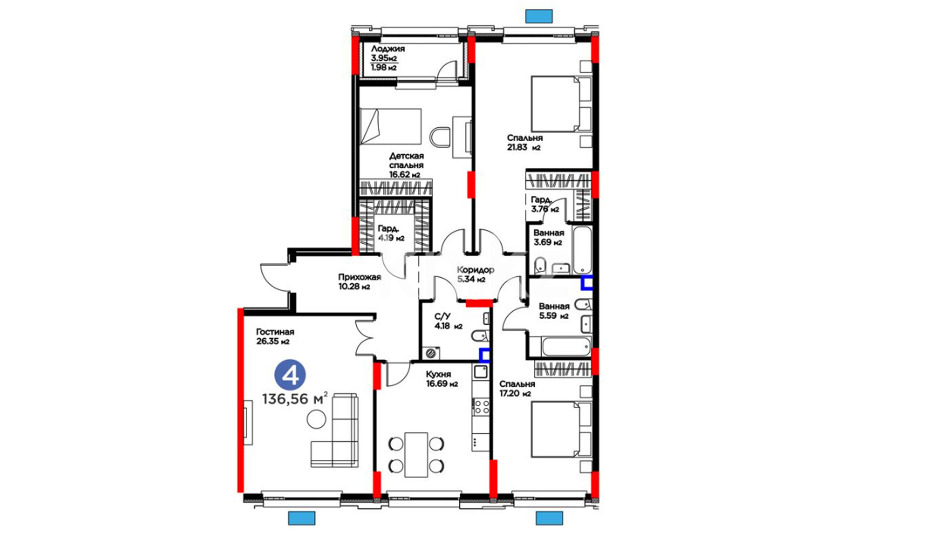 4-комнатная