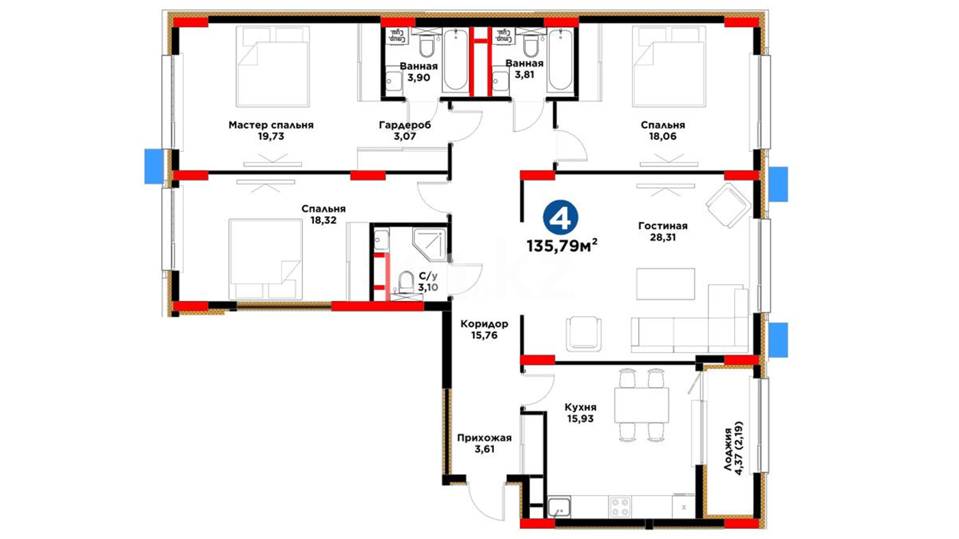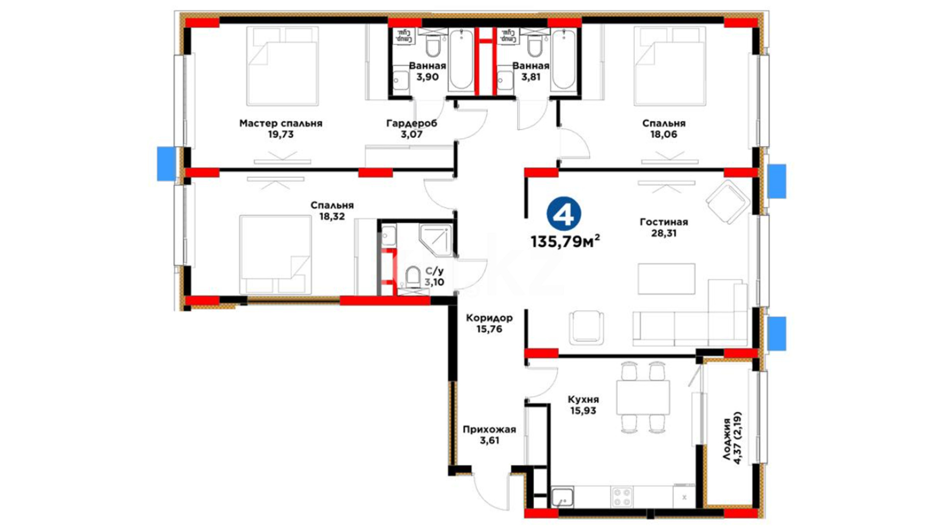 4-комнатная
