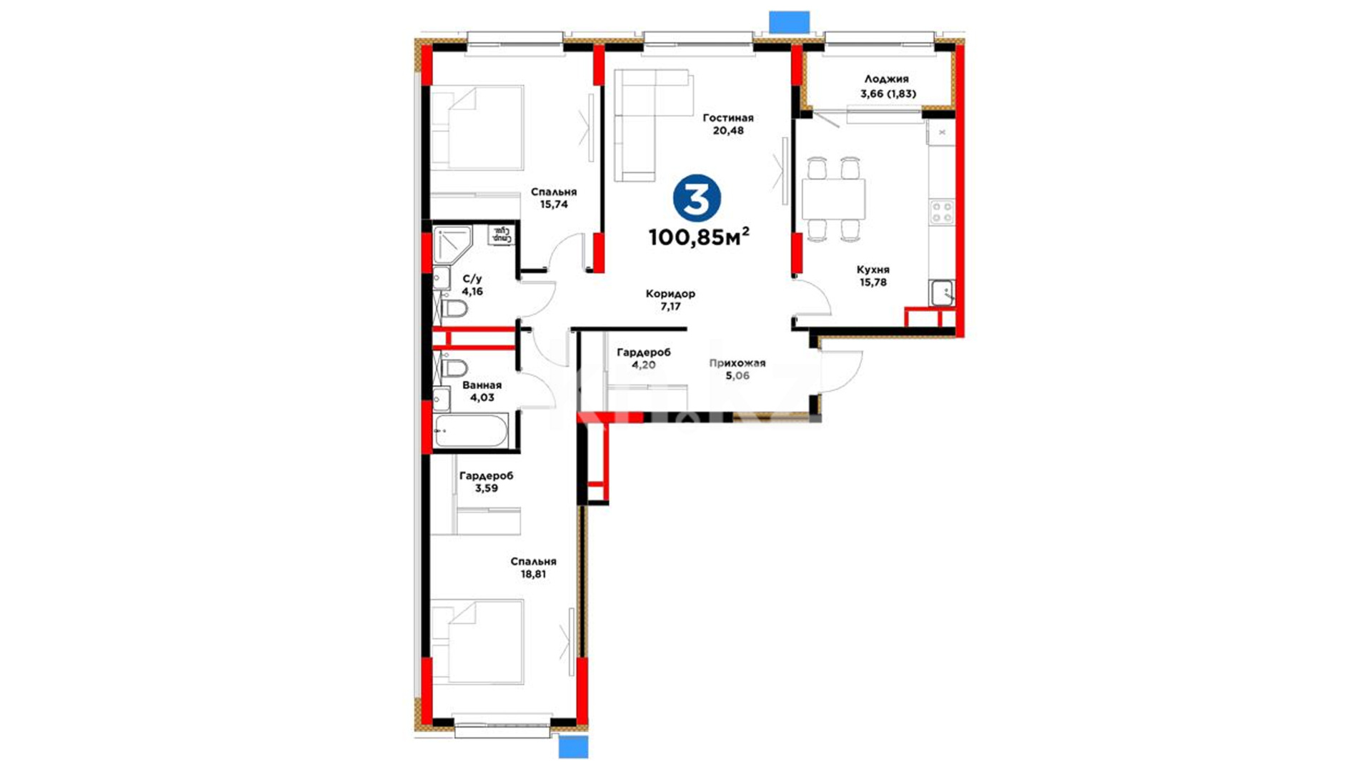 3-комнатная