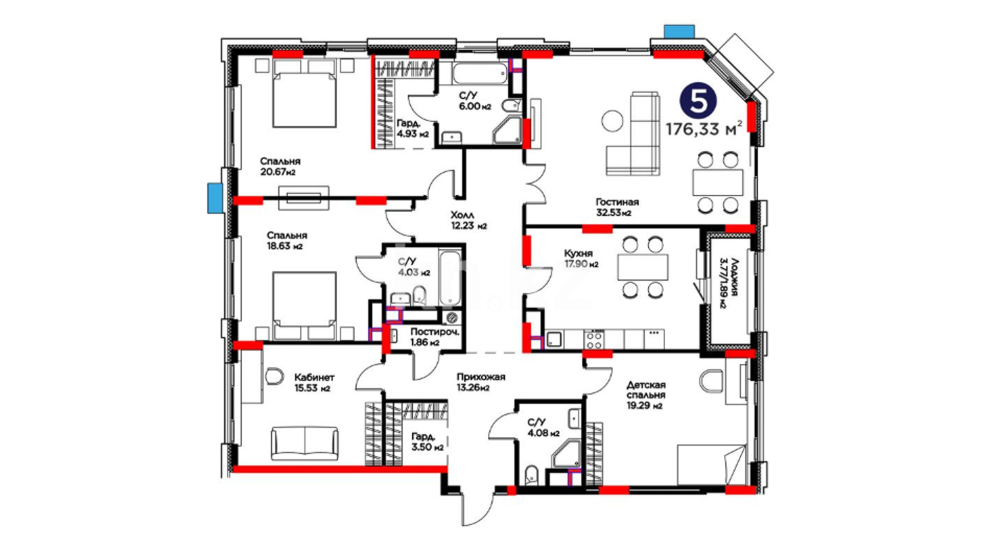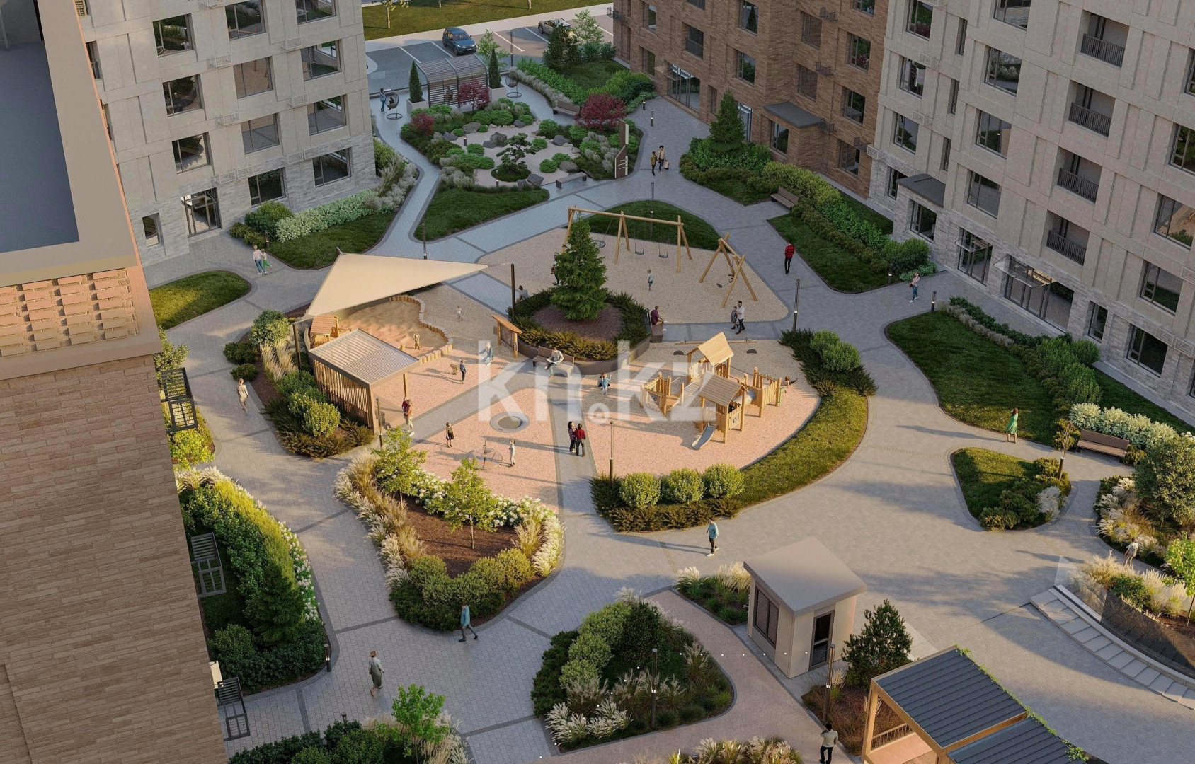 Что касается благоустройства — территория будет закрытой, без машин, с современными дворами, ландшафтным дизайном. Запланированы детские и спортивные площадки, зоны отдыха, прогулочные дорожки, вечернее освещение, скамейки, велопарковки. Окна — панорамные и витражные. Также предусмотрены элементы умных технологий: IP‑домофон, система «умный дом».