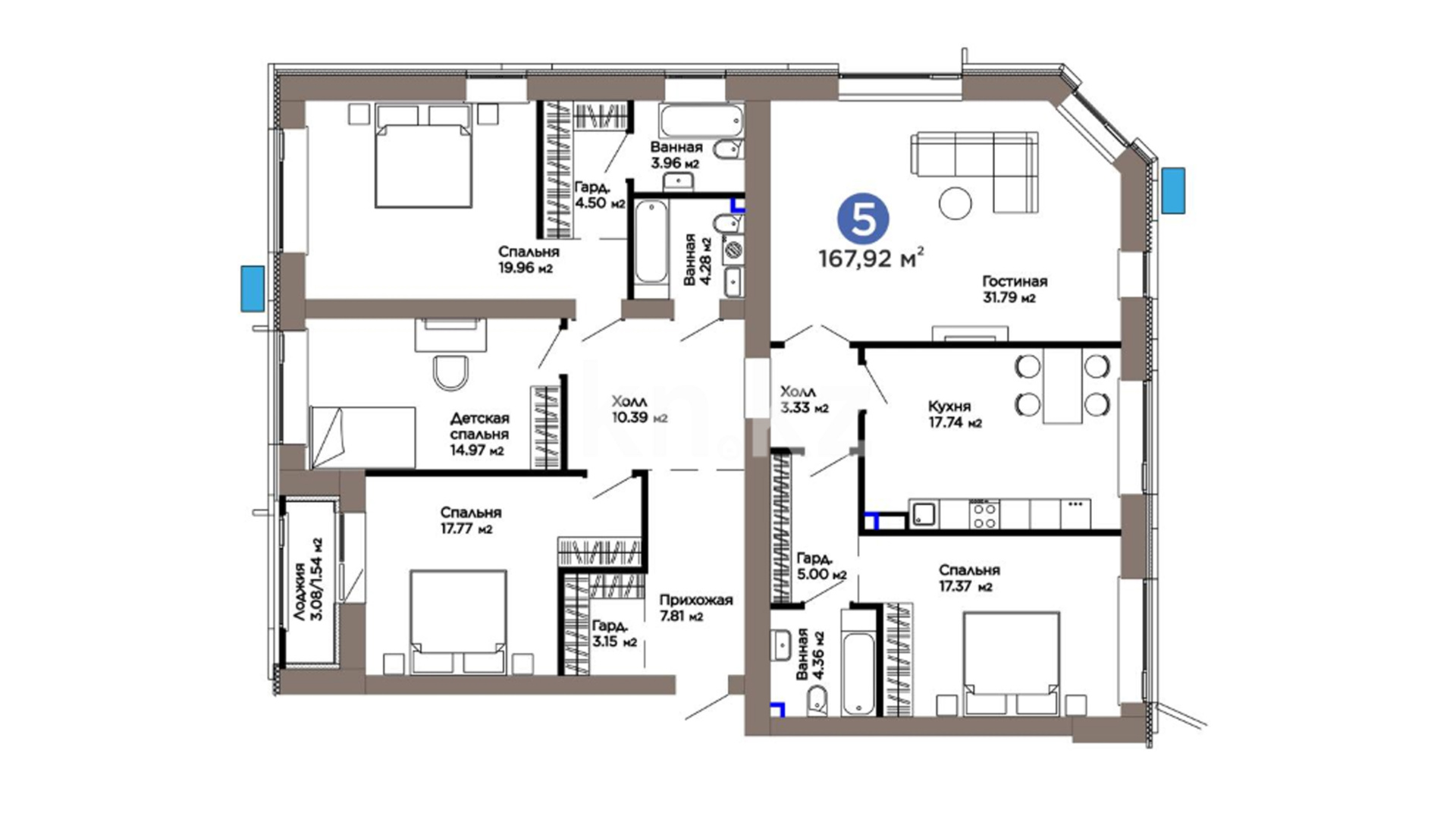 • Стильные картины и декоративные элементы подчеркнут утонченность интерьера.