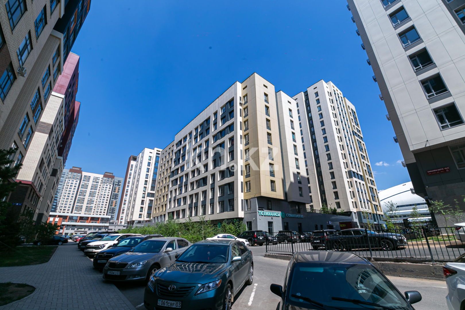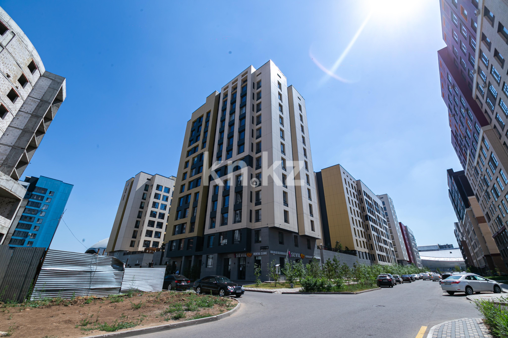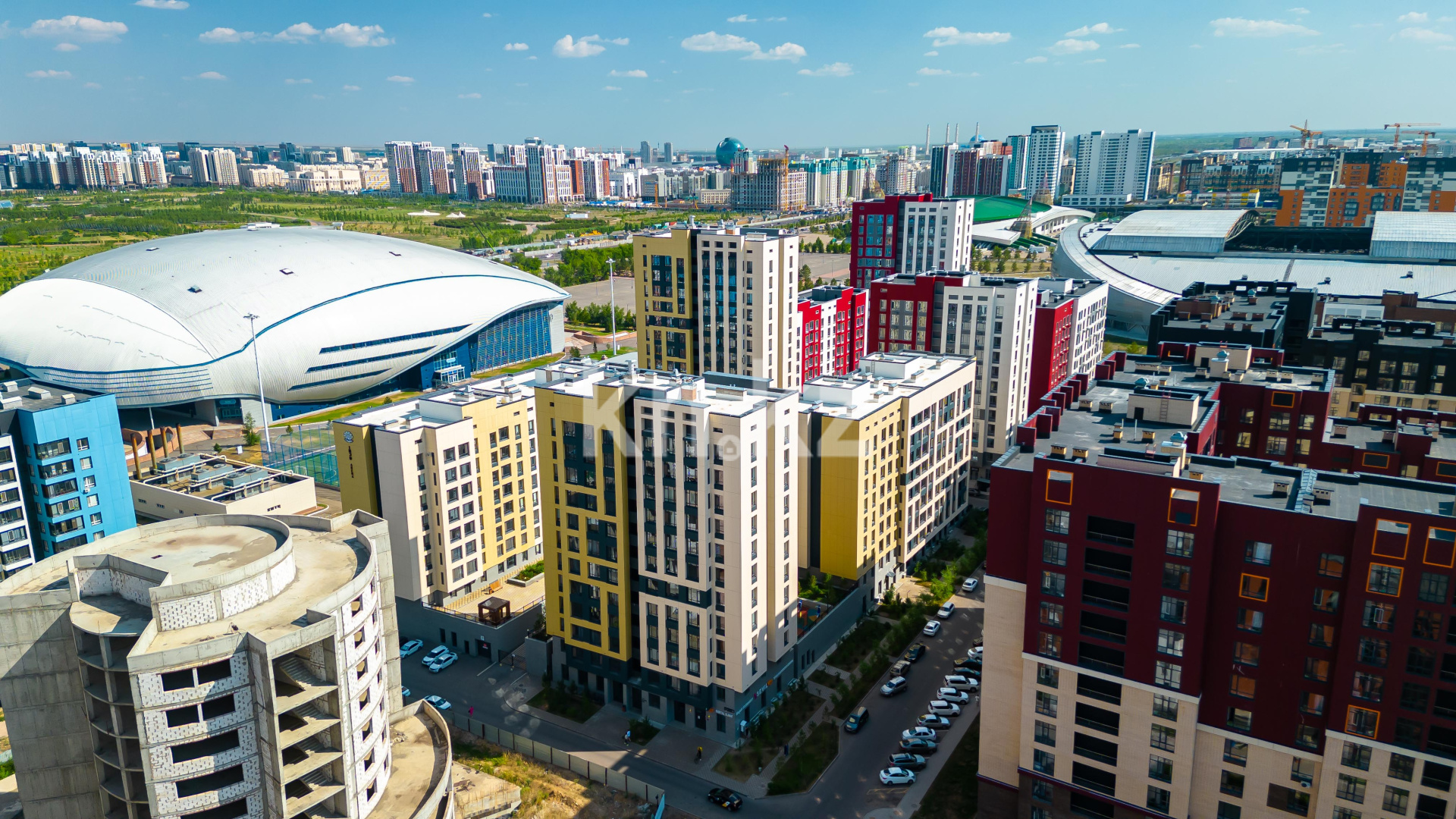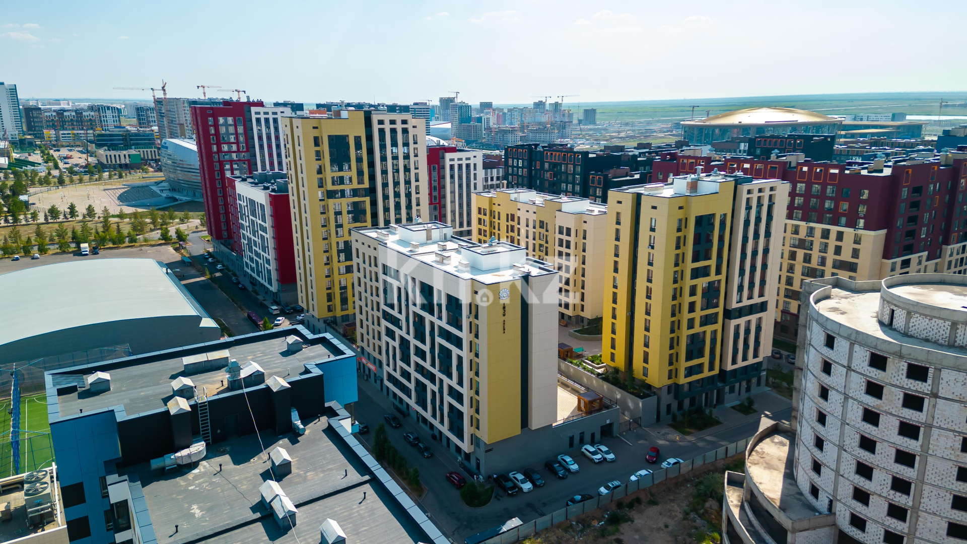 Находится в самом перспективном районе города в окружении таких значимых зданий города, как: ТРЦ «Mega Silk Way», Стадион «Астана Арена», Ледовый Дворец «Алау», Велотрек «Сарыарка».
