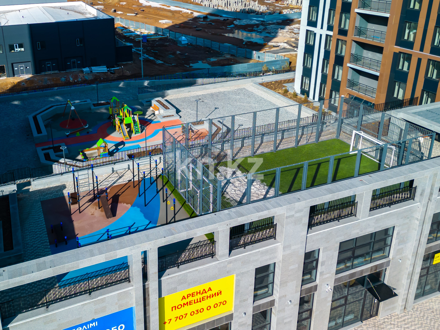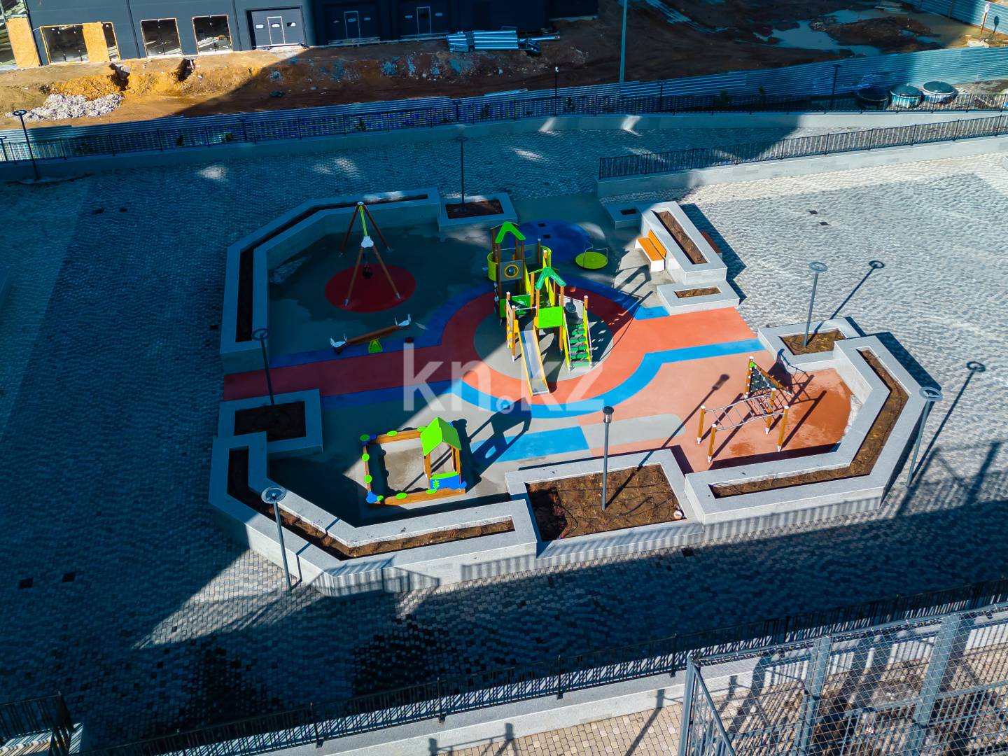 детская игровая зона с качелями и горками;