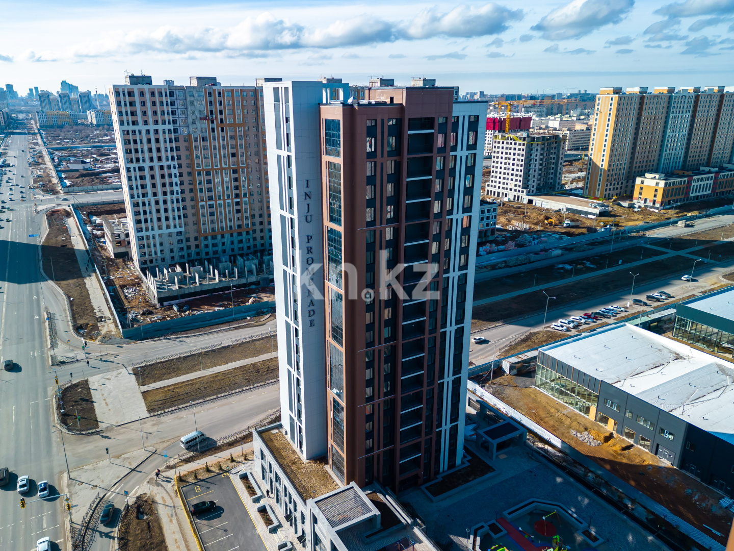 Жилой комплекс «Inju Promenade» расположен в Алматинском районе столицы на пересечении ул. Ж. Нажимеденова и ул. Т. Жургенова, недалеко от вокзала «Нурлы Жол».