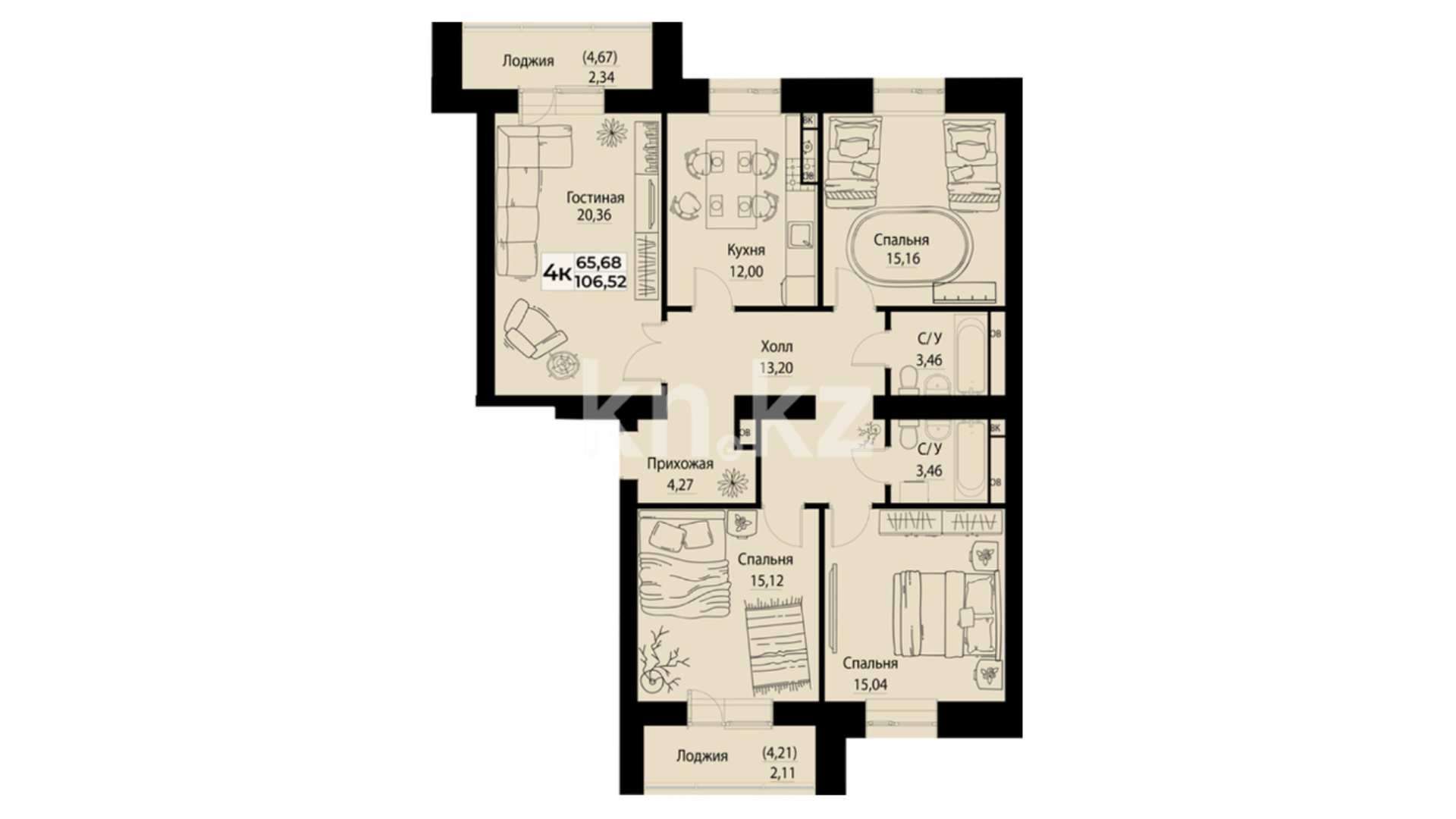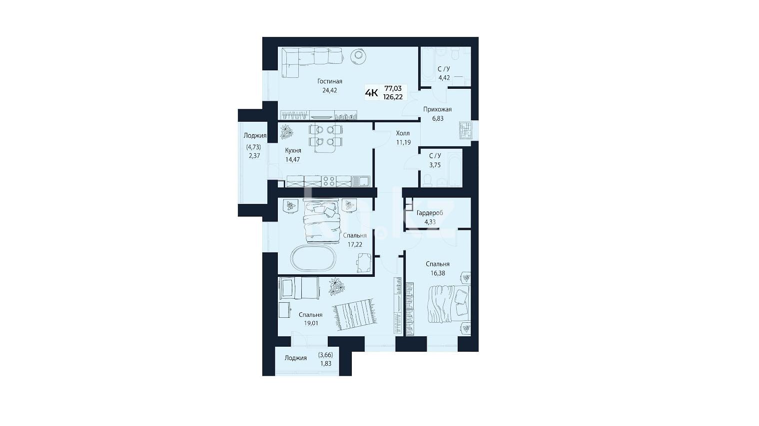 Клубный дом состоит из четырех жилых секций, этажностью 8 этажей и паркинга. Входы в жилые секции предусмотрены на уровне как первого, так и второго этажа. В комплексе представлены 1-, 2-, 3- и 4-комнатные квартиры площадью от 43 кв. метров и коммерческие помещения площадью от 68 кв. метров.