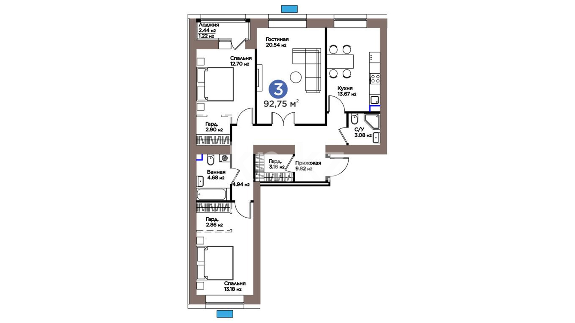 3-комнатная