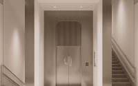 Гладкие стеновые панели контрастируют с металлическими элементами лифтовых зон, создавая современное и выразительное пространство.