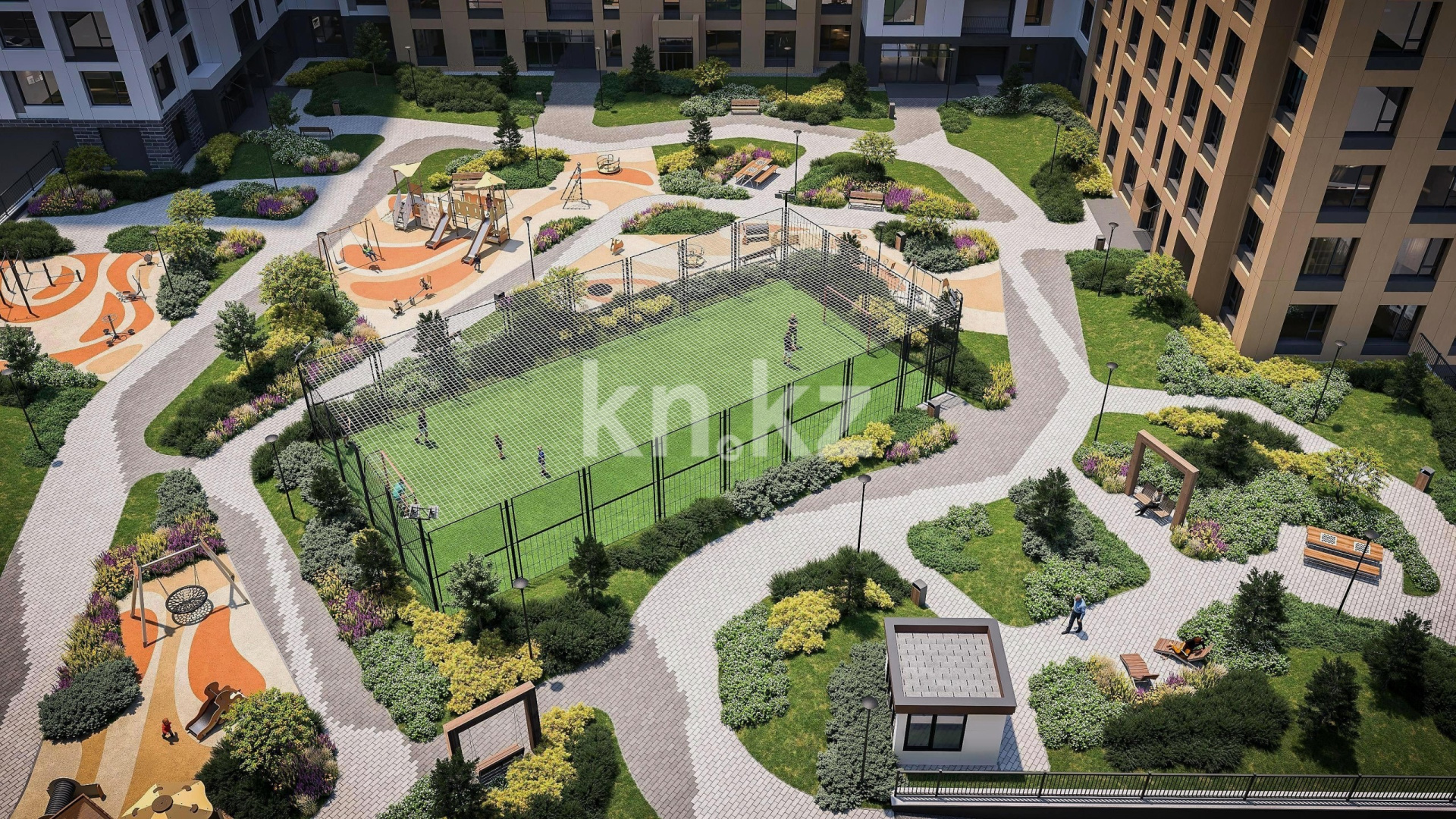 Площади квартир варьируются от примерно 35,24 м² для однокомнатных до 118,5 м² для четырёхкомнатных вариантов. Внутри комплекса будет оборудована подземная или многоуровневая парковка (в разных источниках указывается как подземный и как наземный паркинг) и закрытая дворовая территория. Инфраструктура вокруг насыщена: в пределах пешей доступности находятся школа (~250 м), детский сад (~370 м), аптека (~300 м), магазин (~300 м), супермаркет (~760 м) и торговый центр (~4,1 км). До нового железнодорожного вокзала можно добраться примерно за 12 минут, до ТРЦ MEGA Silk Way и мечети Хазрет Султан — за 15 минут.