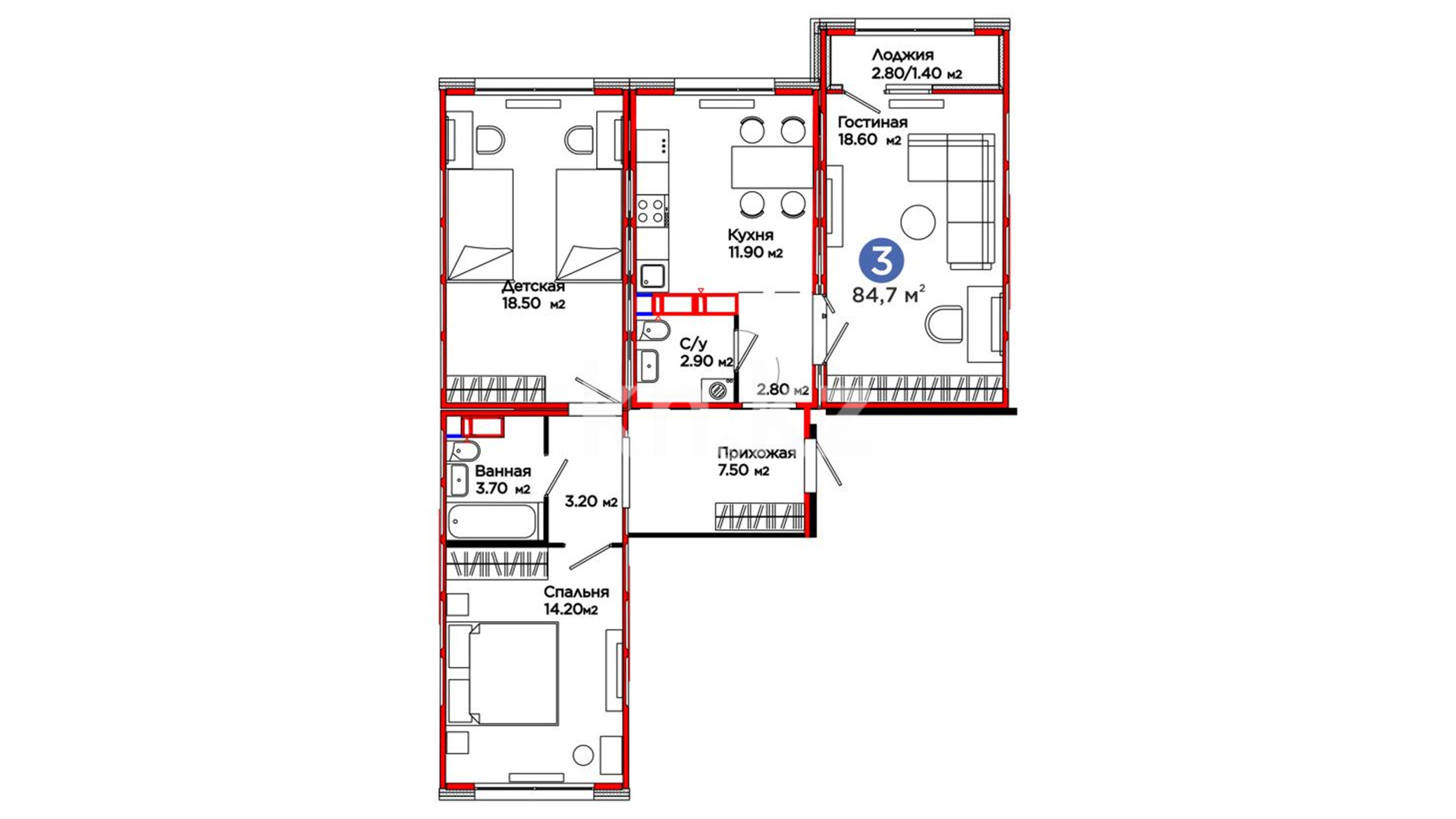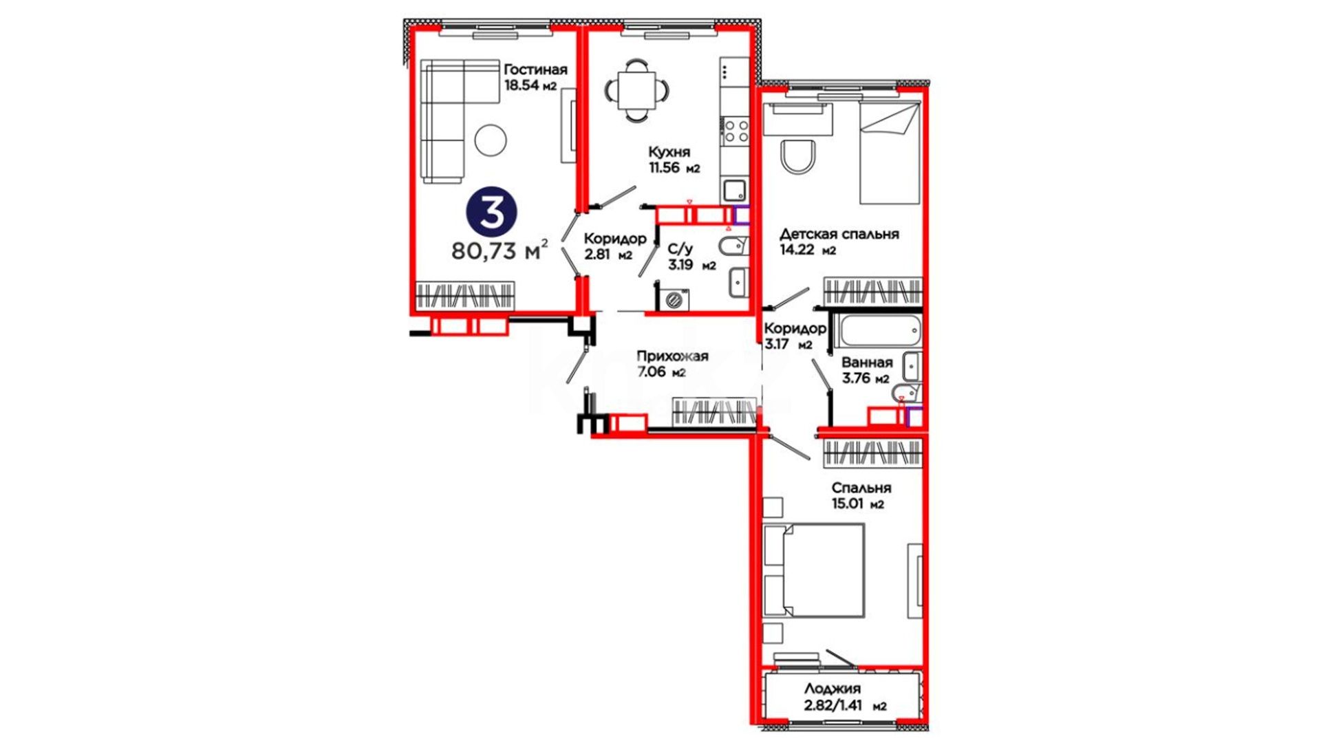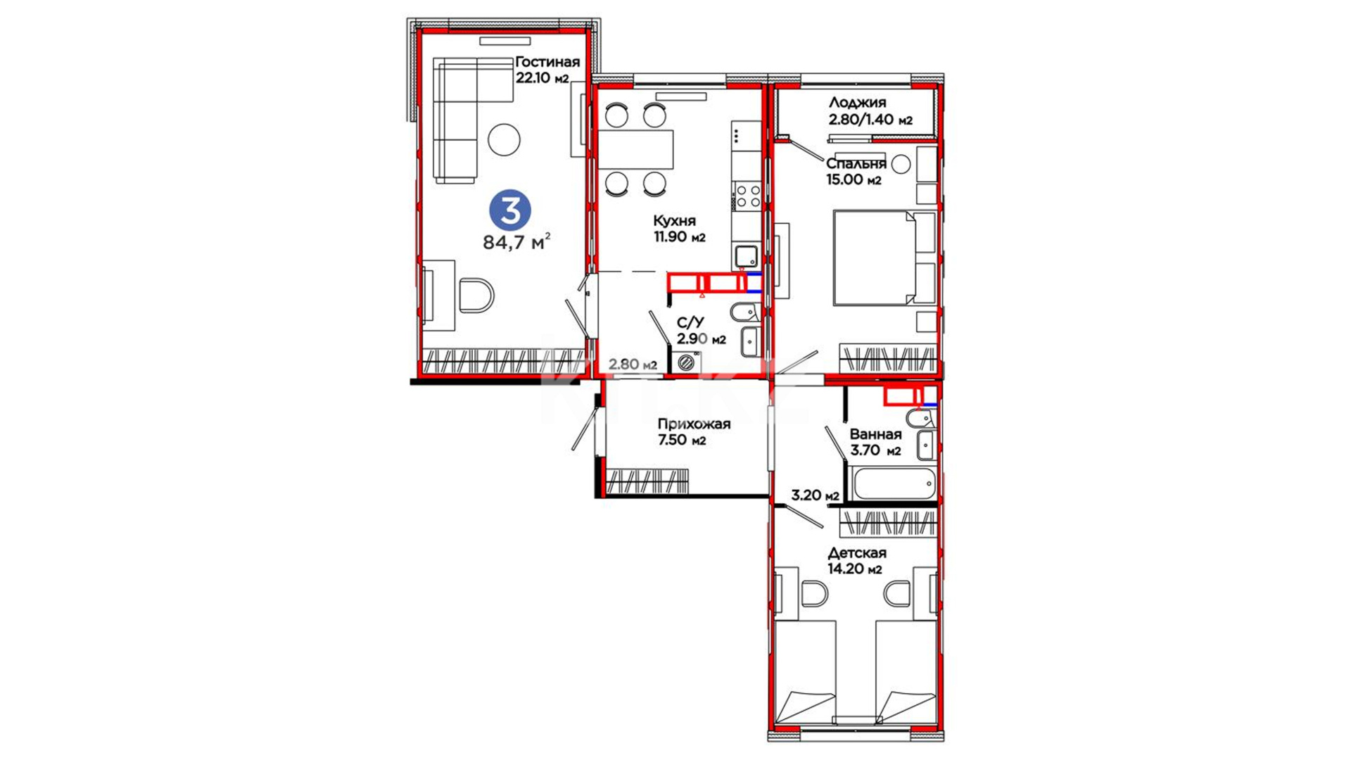 80.7 – 84.7 м²