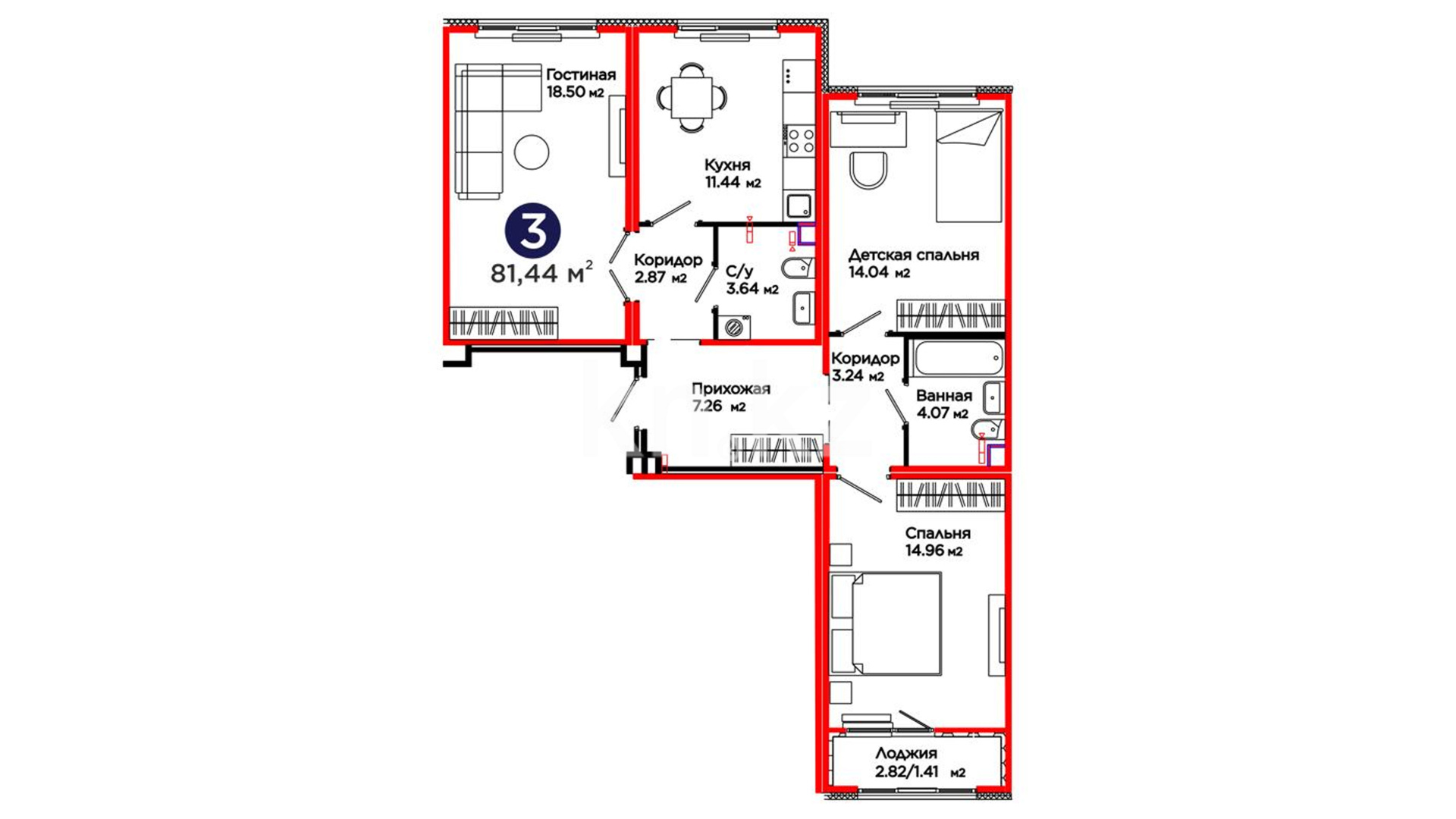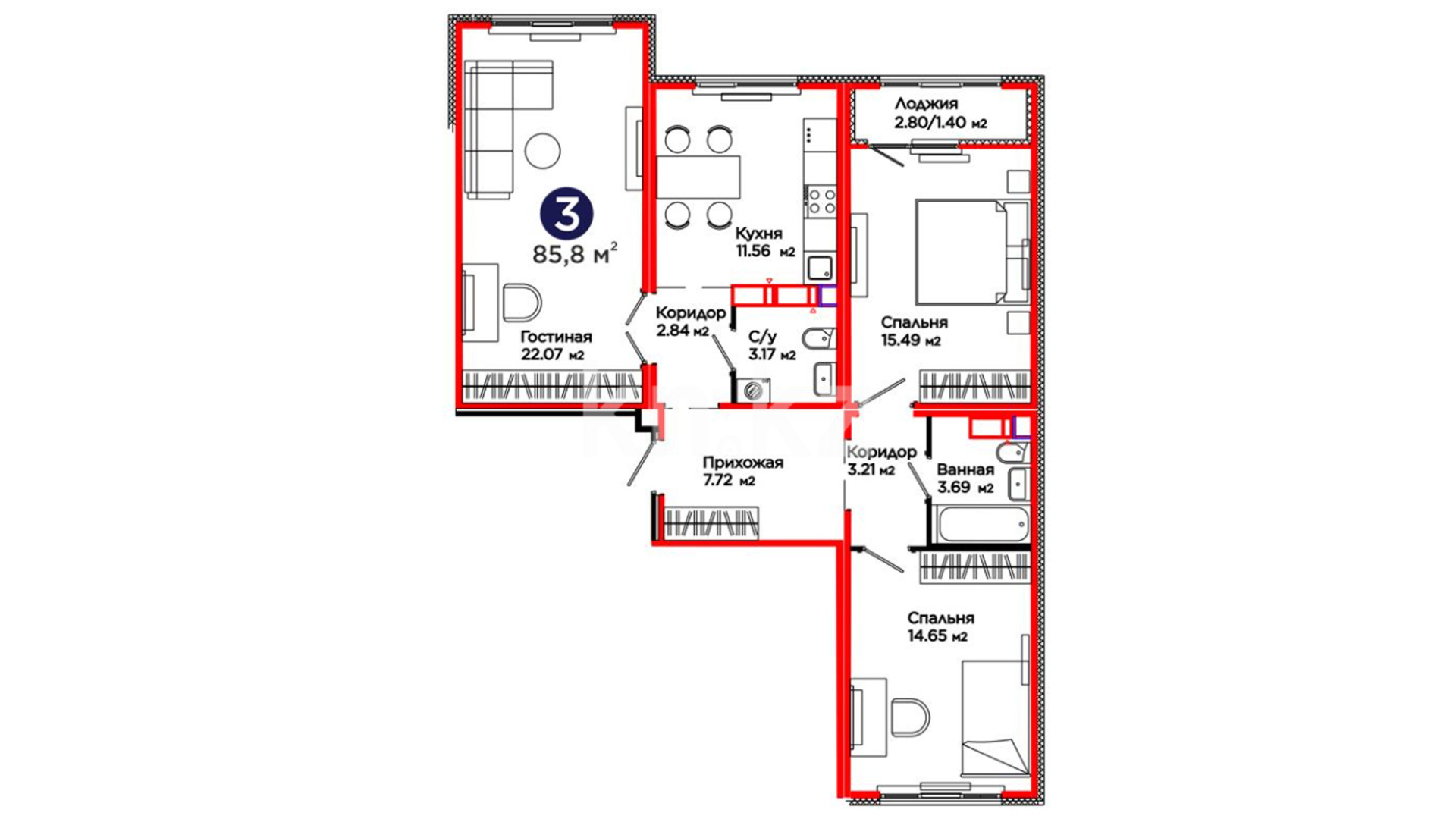 3-комнатная