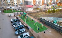 На дворовой территории обустроены детские и спортивные площадки. Возле дома растут большие деревья.