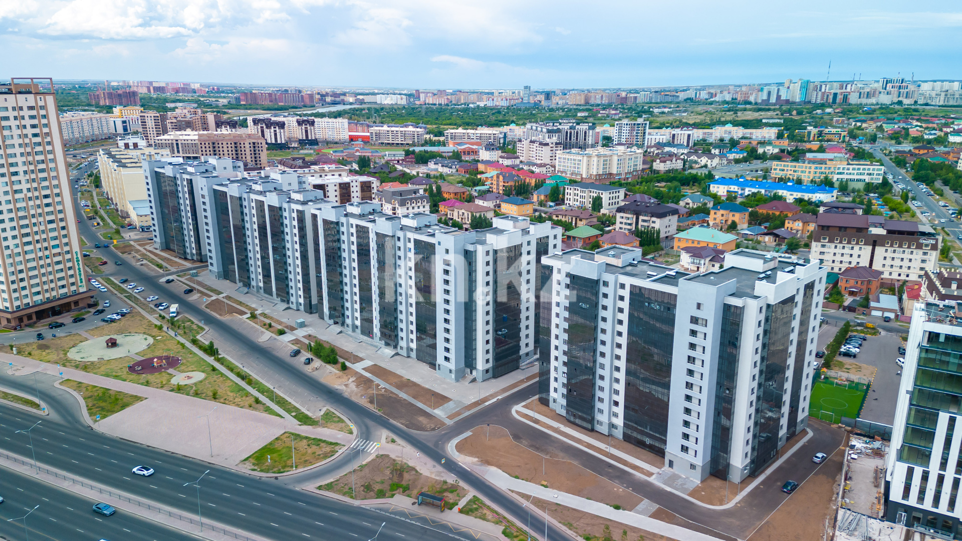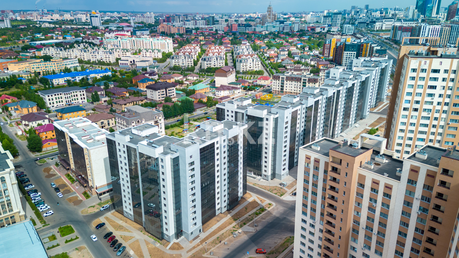 ЖК «Комсомольский» находится на пересечении ул. Кыз Жибек и Улпан (в районе ТРЦ «Хан-Шатыр»).