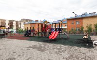Рядом с домом строится школа, есть детский сад. Во дворе – детская и спортивная площадки. В 5 минутах езды находятся несколько разнопрофильных медицинских центров, в 15-20 минутах – аэропорт. Для удобства жителей на первом этаже расположен полный комплекс инфраструктуры – магазин, аптека, салон красоты, детский центр творчества.