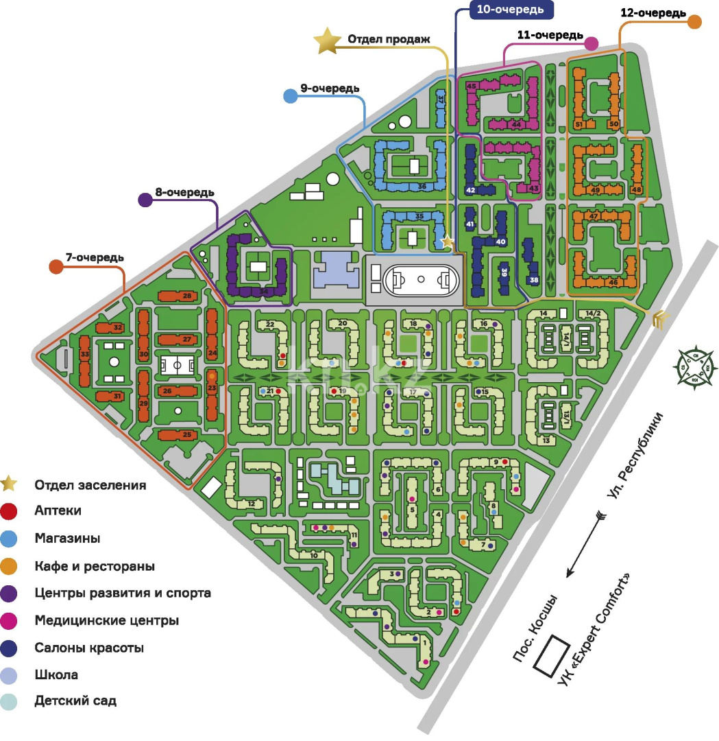 Жилой массив расположен в п. Косшы в 12 км от левобережья Астаны. До административного центра столицы всего 15 минут приятной прямой дороги без пробок.