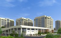 Комплекс расположен на пересечение проектных улиц А 62 и А 91 на первой линии нового международного вокзала "Нурлы жол".