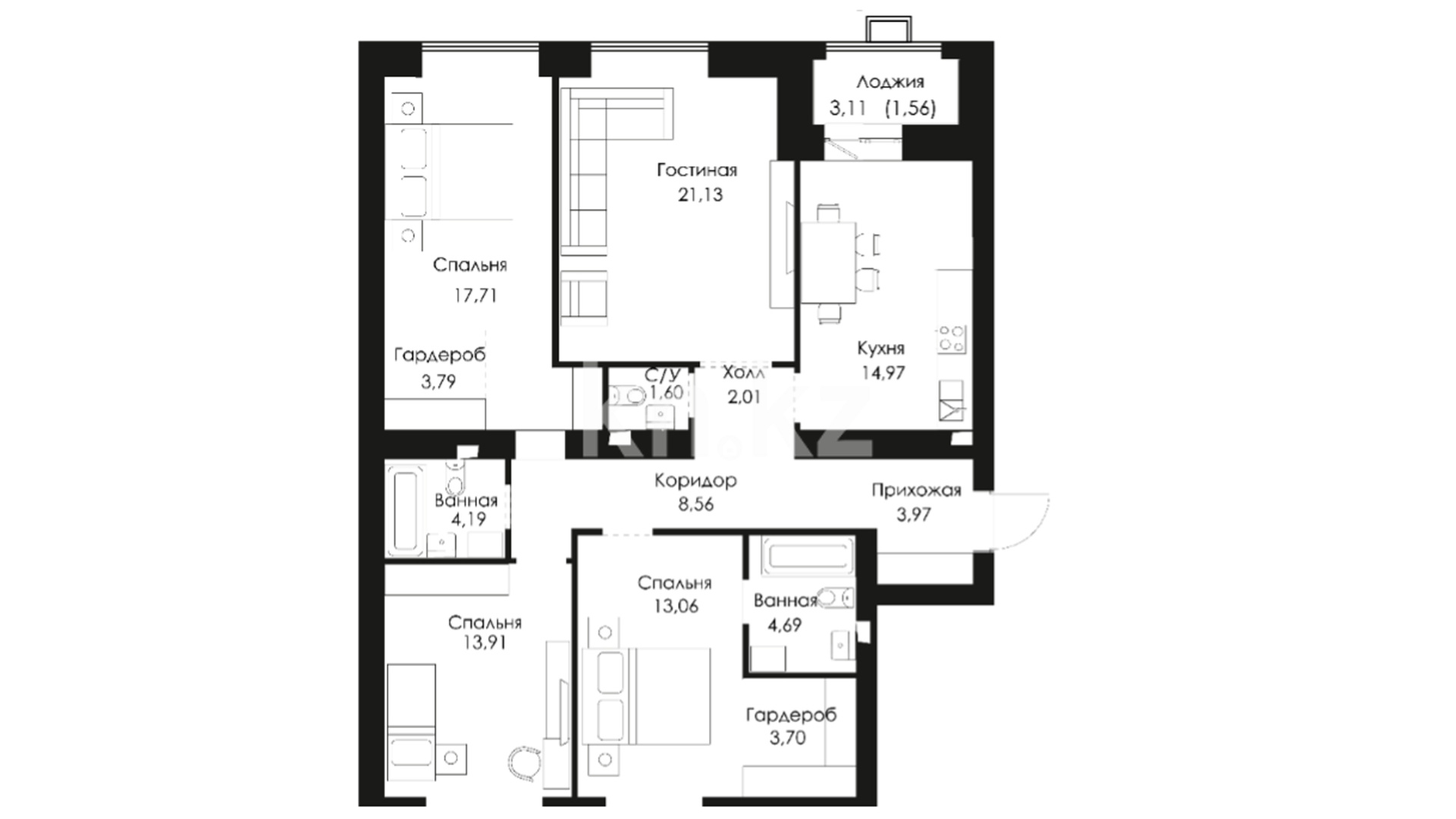 3-комнатная