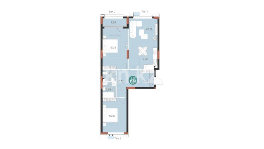 Mangilik Park — это жилой комплекс бизнес-класса, выполненный в современном архитектурном стиле с использованием качественных и долговечных материалов. Здания имеют монолитно-каркасную конструкцию с газоблоками, утеплены и облицованы клинкерной плиткой и HPL-панелями, что придаёт им презентабельный и строгий внешний облик. Комплекс состоит из четырёх блоков высотой 12–13 этажей. Квартиры представлены в различных планировках — от компактных однокомнатных до просторных четырехкомнатных, площадью от 43 до 140 квадратных метров. Высота потолков — 3 метра, на первом и последнем этажах — до 3,3 метров, а большие панорамные окна наполняют помещения естественным светом и открывают красивые виды на город и канал. В каждой секции предусмотрены современные лифты, установлены системы видеонаблюдения, работают охрана и домофоны. Поддержка безопасности реализована на высоком уровне — вход по Face ID и Touch ID, электронные замки и огороженная территория создают ощущение защищённости и уюта.
