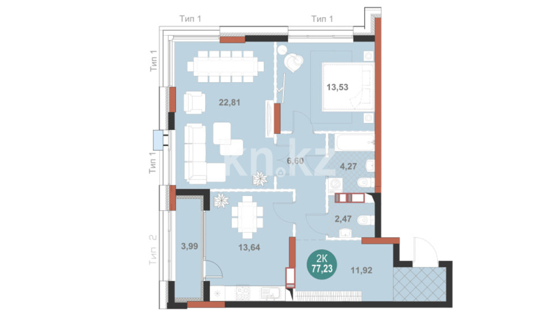 Инфраструктура вокруг жилого комплекса развита очень хорошо. В шаговой доступности расположены престижные школы, такие как BINOM School и лицей №88, детские сады, включая "Карлыгаш", международные образовательные учреждения, а также аптеки, медицинские центры, супермаркеты и отделения банков. В пределах 5–10 минут езды находятся крупнейшие торгово-развлекательные центры, включая MEGA Silk Way, и социально значимые объекты, такие как больницы, поликлиники и спортивные комплексы. Район активно застраивается и модернизируется, что обеспечивает рост его инвестиционной привлекательности и делает его особенно удобным для семей с детьми.