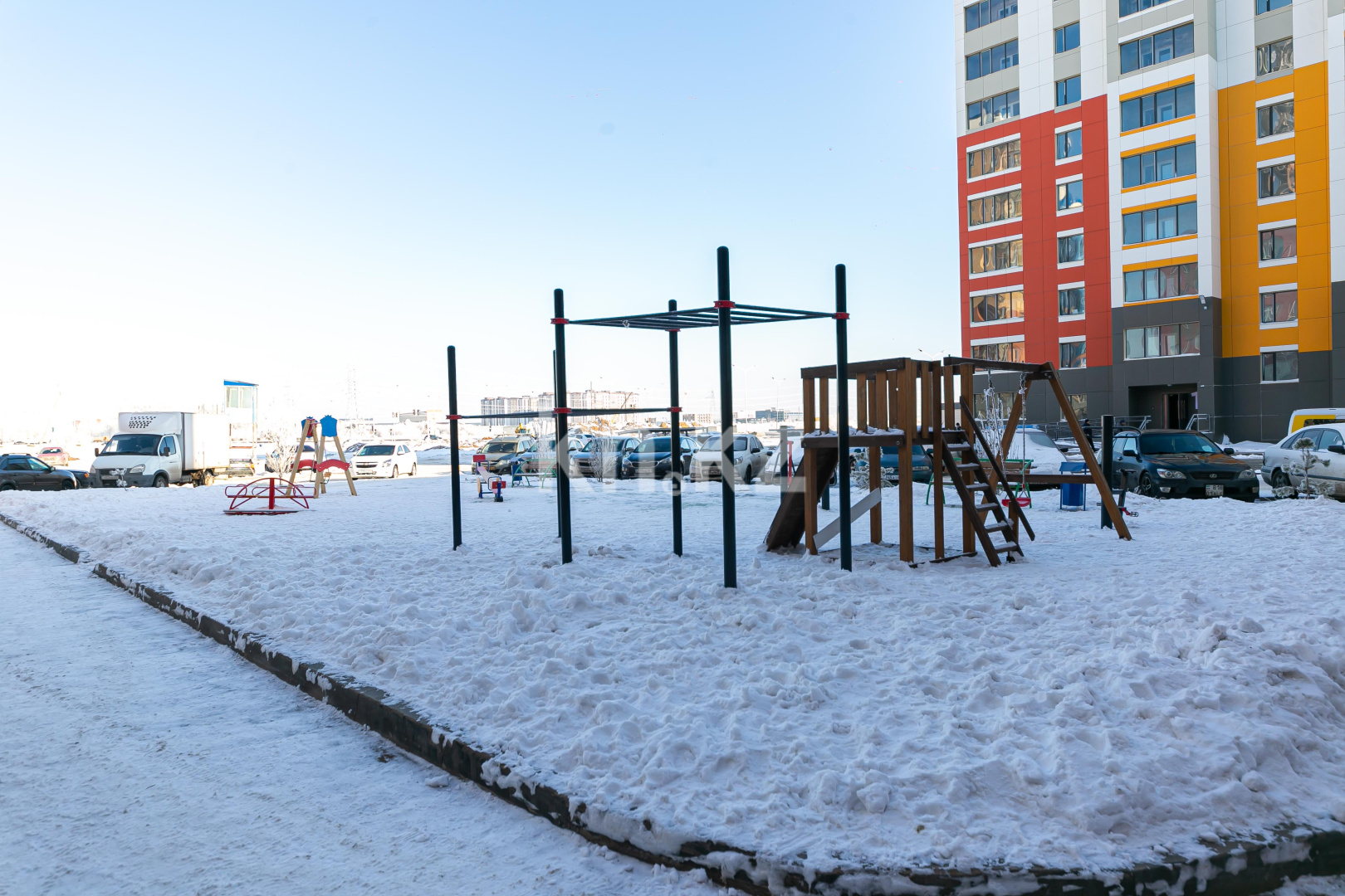 Частично закрытый внутренний двор, площадь которого поделена на функциональные зоны: зоны отдыха с лавочками, спортивная площадка с уличными тренажерами и детская игровая зона с безопасным покрытием.