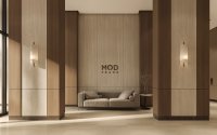 Архитектурная концепция MOD Frame - это гармоничное сочетание современных трендов столичной застройки и культурных акцентов. Контрастные фасады с элементами национального орнамента придают зданию выразительный и запоминающийся облик, подчеркивая его связь с историей и традициями страны. Особенностью комплекса является уникальное расположение блоков под разными углами - это не только придаёт зданию динамику, но и обеспечивает прекрасные виды из окон и максимальное естественное освещение квартир.
