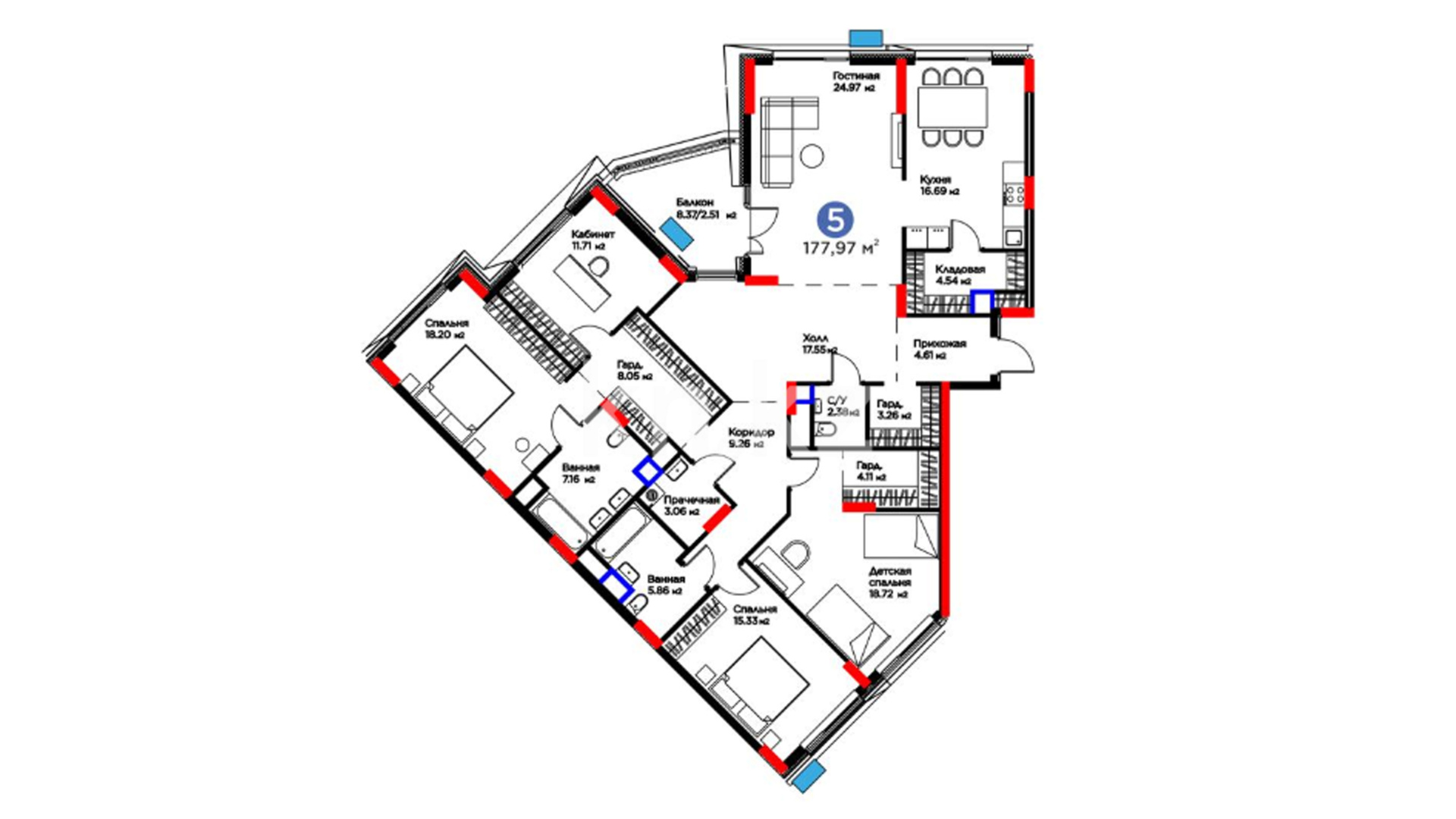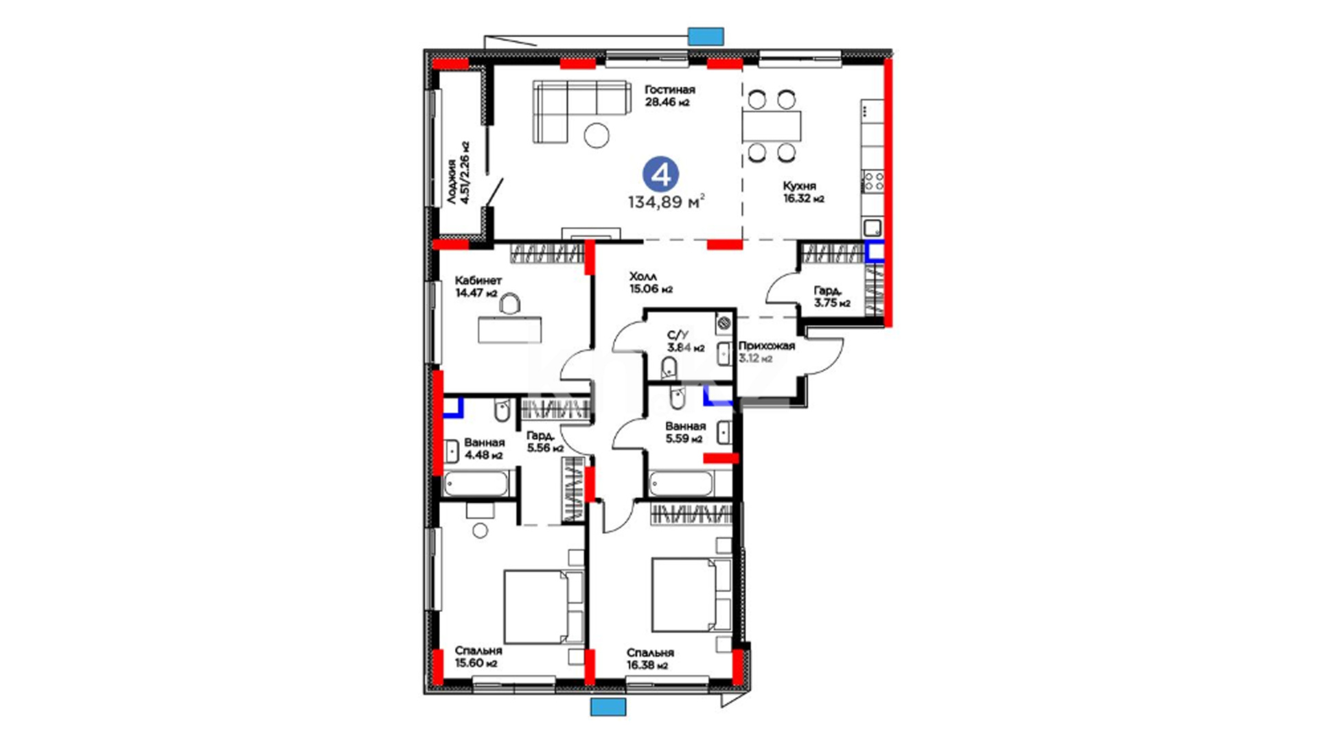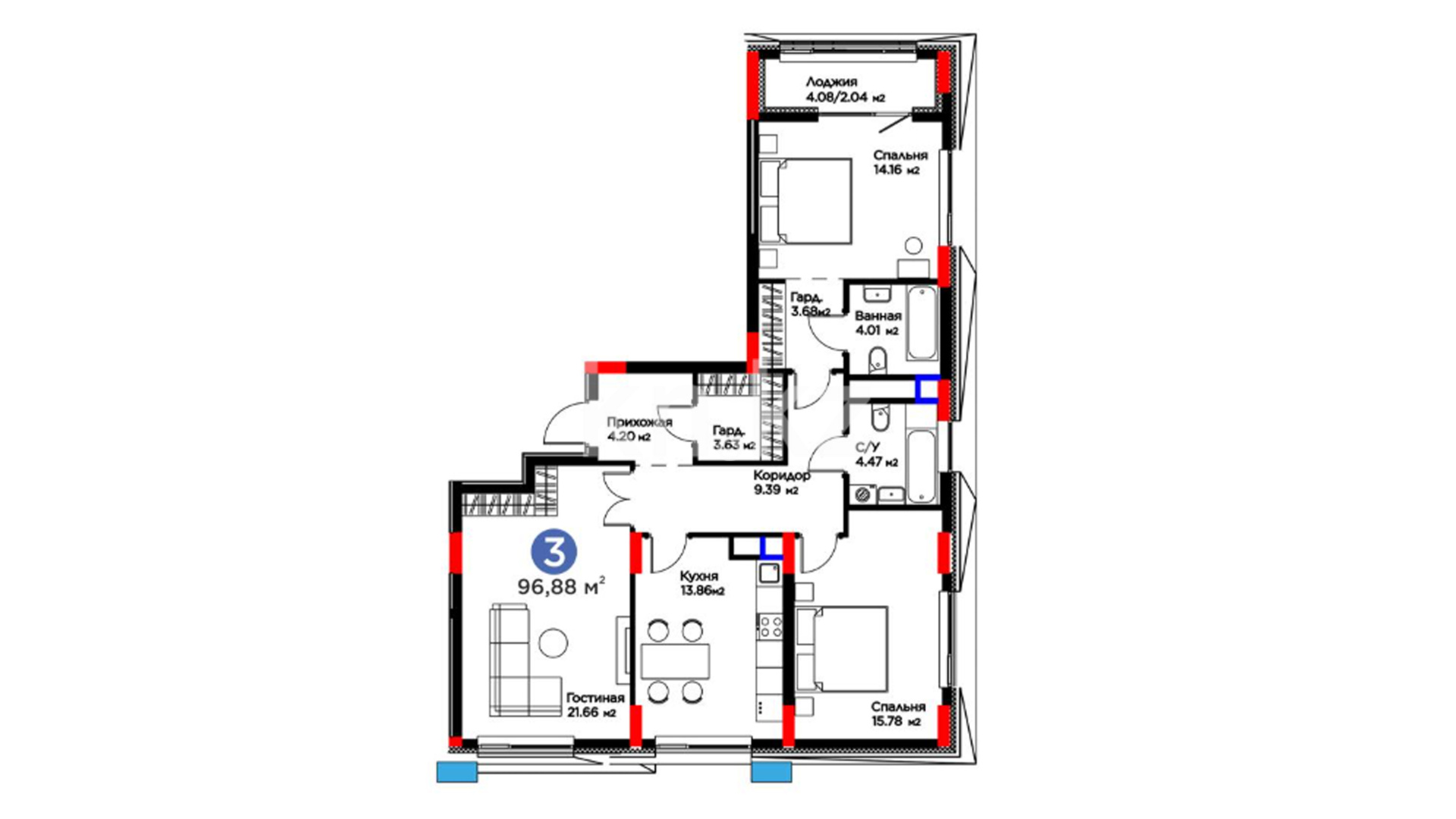 Это 17-этажное монолитное здание бизнес-класса с 200 квартирами, в которых потолки достигают трёх метров. Квартиры предлагаются от студий до четырёхкомнатных — их площади варьируются примерно от 43 до почти 180 м². В отделке — черновой вариант, что даёт возможность гибкой перепланировки и индивидуального оформления интерьера.