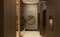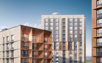 Архитектура комплекса выдержана в современном модульном стиле: фасады украшены фиброцементными панелями и металлическими акцентами, а большие панорамные окна позволяют проникновению естественного света. Монолитный каркас обеспечивает прочность, стены выполнены с газоблока, а межквартирные перегородки из Acoustic Pro повышают уровень звукоизоляции. В здании есть и пассажирские, и грузовые лифты для комфортного передвижения.