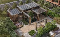 Территория комплекса благоустроена в духе «двор без машин»: внутренний двор — это зелёные прогулочные аллеи с натуральными линиями ландшафта, дизайнерскими зонами отдыха и цветочными клумбами, BBQ-зона с беседками, лаунж-шезлонгами и тихими уголками для общения. Детская площадка выполнена из эко-материалов, предусмотрены зоны для спорта и активного отдыха. Безопасность обеспечивается круглосуточной охраной, видеонаблюдением, системой видеодомофонии и электронными замками (включая Face ID).