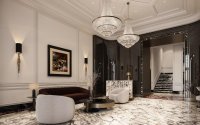 Просторные холлы оформлены с использованием роскошных портьер, дизайнерских люстр и мягкого приглушенного освещения, создающего уют и спокойствие. Входная группа дополнена зоной ожидания с удобной мягкой мебелью, идеально подходящей для короткого отдыха, деловых переговоров или ожидания водителя. Дополнительное удобство обеспечивает услуга консьержа. Квалифицированный персонал всегда готов помочь: от организации доставки документов до вызова транспорта, что делает жизнь в Mone ещё более комфортной.