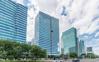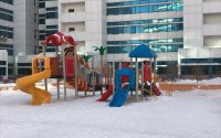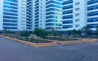 Раскинувшиеся на территории комплекса дорожки, площадки и парки контрастируют своими плавными, текучими формами с подчеркнуто геометричным обликом зданий. Практически весь внутренний двор отдан под создание парковой зоны, занимающей более 10 000 кв.м.